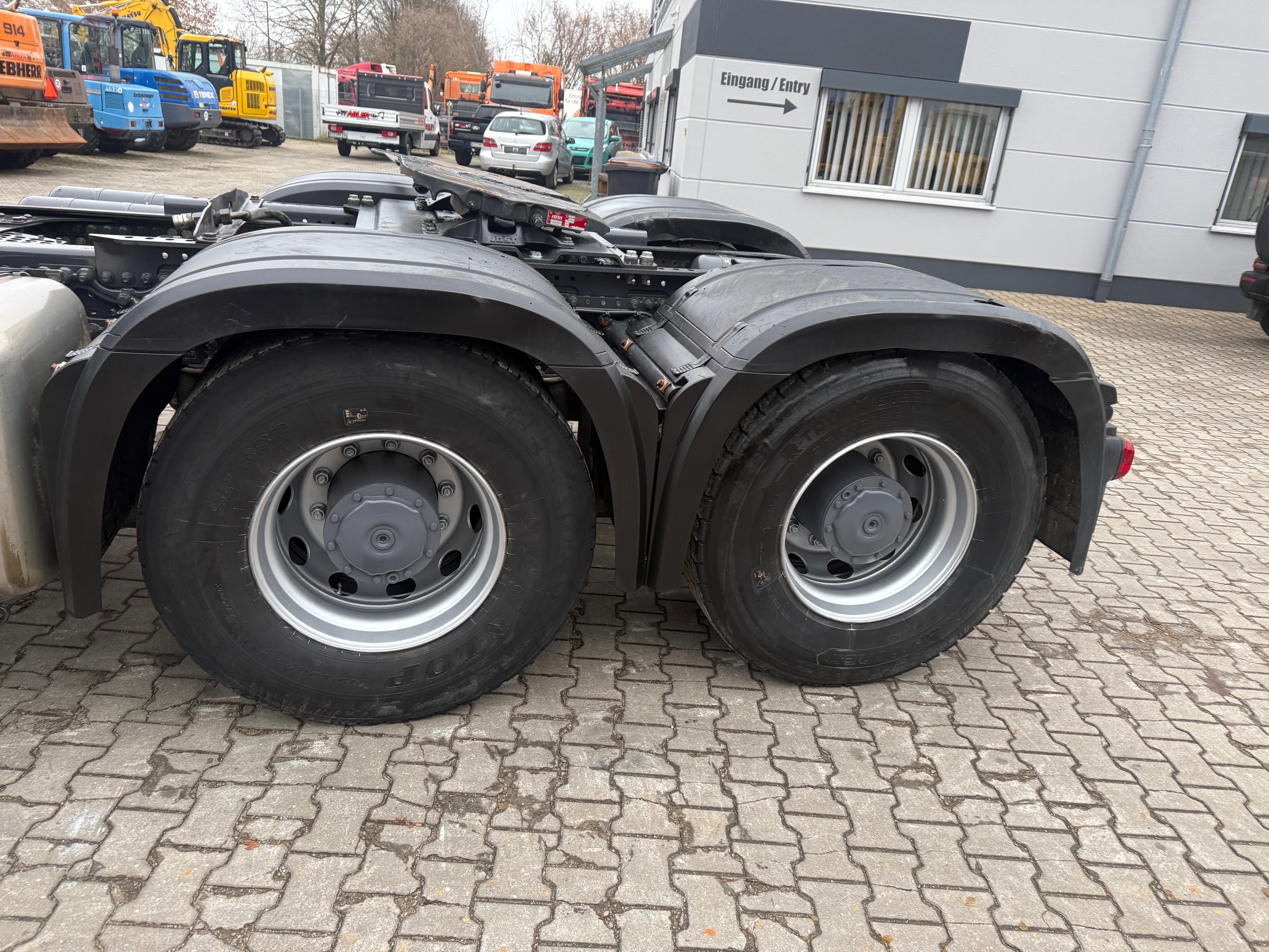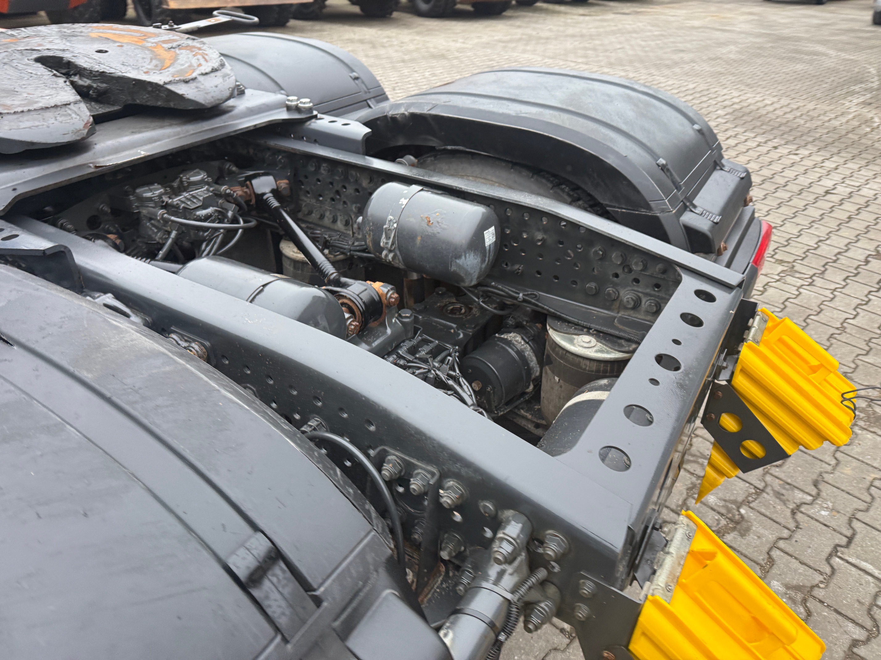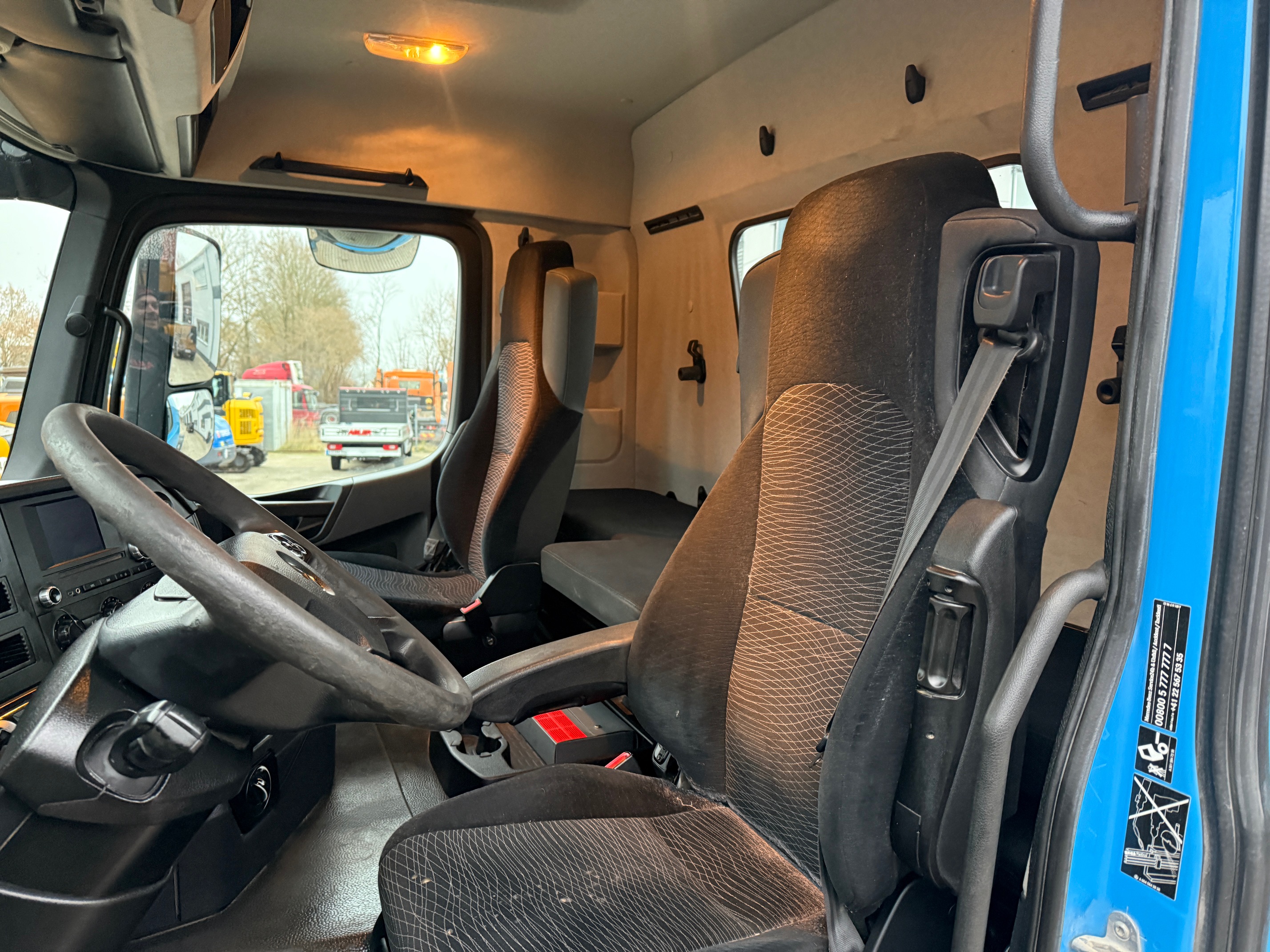 ABS abschaltbar, Achslast - Messeinrichtung, Achslast Vorderachse 8,0 t, Audiosystem: CD-Radio Komfort (Bluetooth), Auftritt mit Handlauf am Dach, Auspuff hochgezogen hinter Fahrerhaus, Batterie 220 Ah, Drucklufthorn, Fahrerhaus: Fahrerhauseinstieg beweglich, Fahrerhaus: stahlgefedert, Komfort, Federung: Vorderfedern 8,0 t, 3 Blatt, Fzg. ohne Unterfahrschutz vorn, Getriebe 12-Gang - Typ: G 330-12, Kommunikationsschnittstelle, Luftansaugung von vorn, Luftpresser 2-stufig, Montageplatte / Sattelplatte 40 mm für Sattelkupplung, Motorlagerung verstärkt, Motorraum-Kapselung verstärkt, Nebenantrieb MB 131-2c, Parametrierbares Sondermodul, Rahmenabsenkung ohne Balg-Restdruckregelung, Retarder, Rückfahrwarner akustisch (Warnsignal außen), Rückwandfenster, Sattelkupplung: manuell geschmiert, Sicherungsautomat, Sitze im Fahrerhaus: Fahrersitz Schwingsitz Komfort, Sitze im Fahrerhaus: Fahrersitzlehne umklappbar, Sonnenblende außen, Stahlfelgen 9.00x22.5, Stauklappe außen links, Steckdose 12V im Beifahrerfussraum, Steckdose 24V im Beifahrerfussraum zusätzlich, Vorbereitung / Schalter Liftachse am Auflieger / Anhänger, Vorbereitung Fleetboard, Zweischeibenkupplung