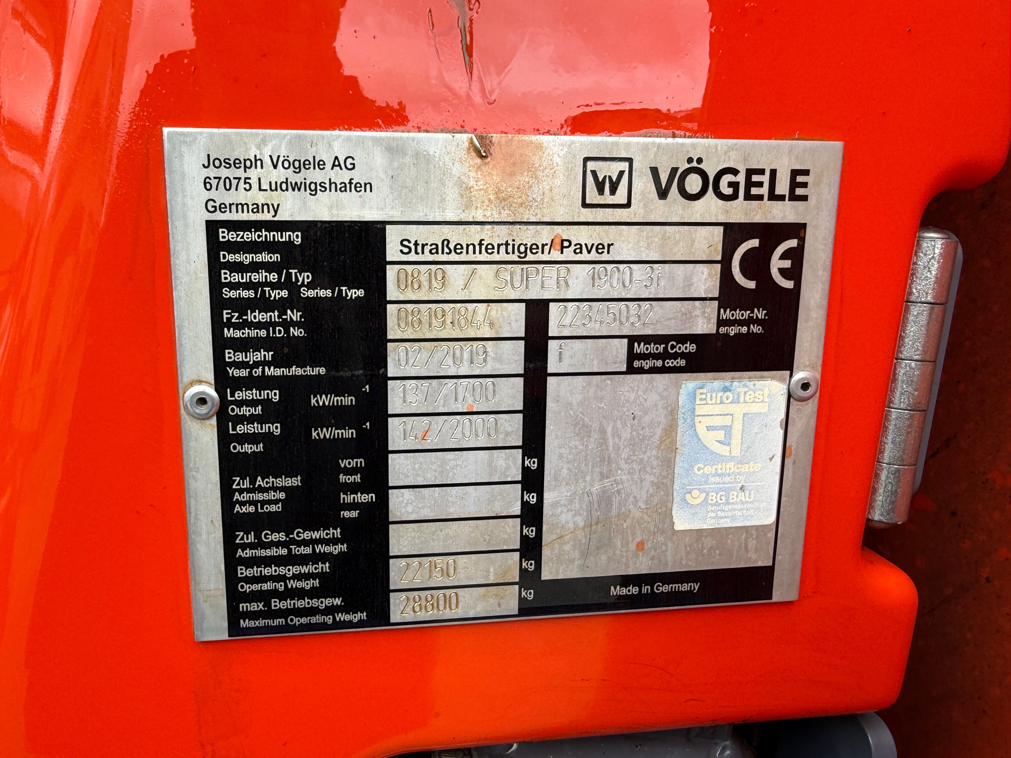 - Vögele Super 1900-3i Asphaltfertiger